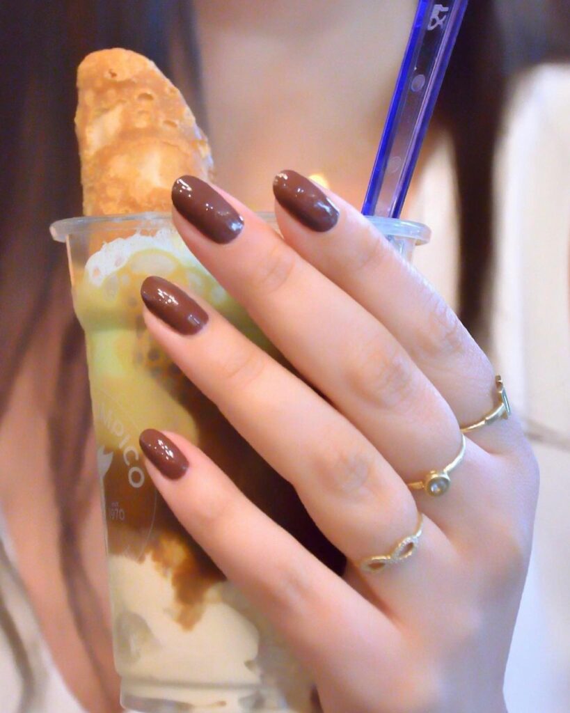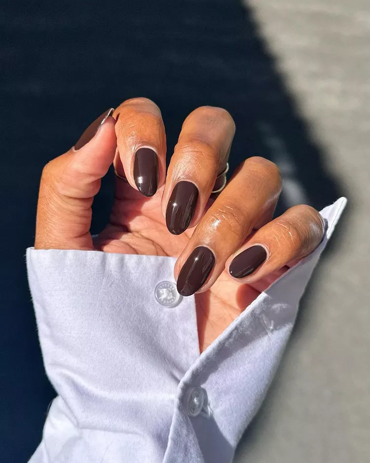 Sometimes, simplicity is best. A solid brown manicure is timeless and elegant, offering a polished and sophisticated look. This deep brown hue will never go out of style and goes well with any outfit.
