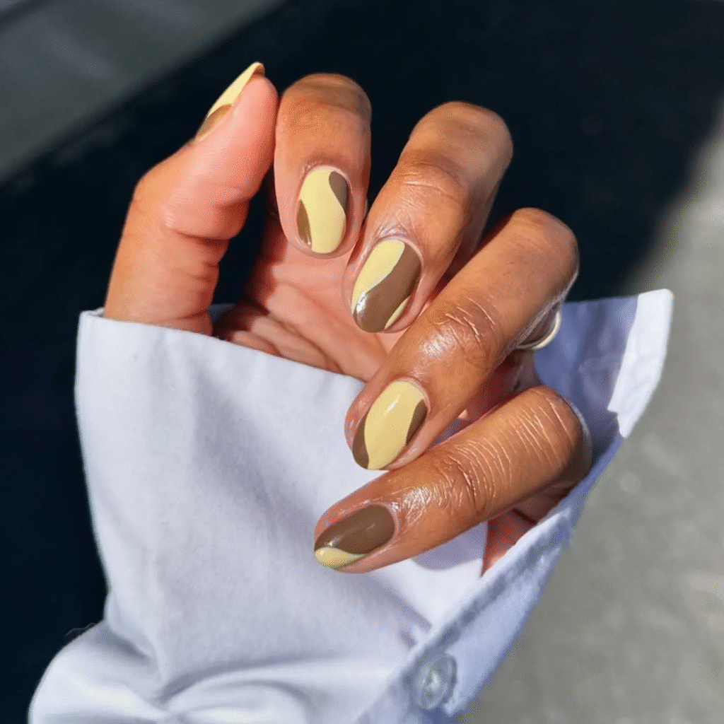 Butter yellow may not be the first color you think of for fall, but it’s a surprisingly perfect match. When paired with rich brown, it gives off a warm, autumn vibe. The swirl design adds a playful touch that’s perfect for the season.
