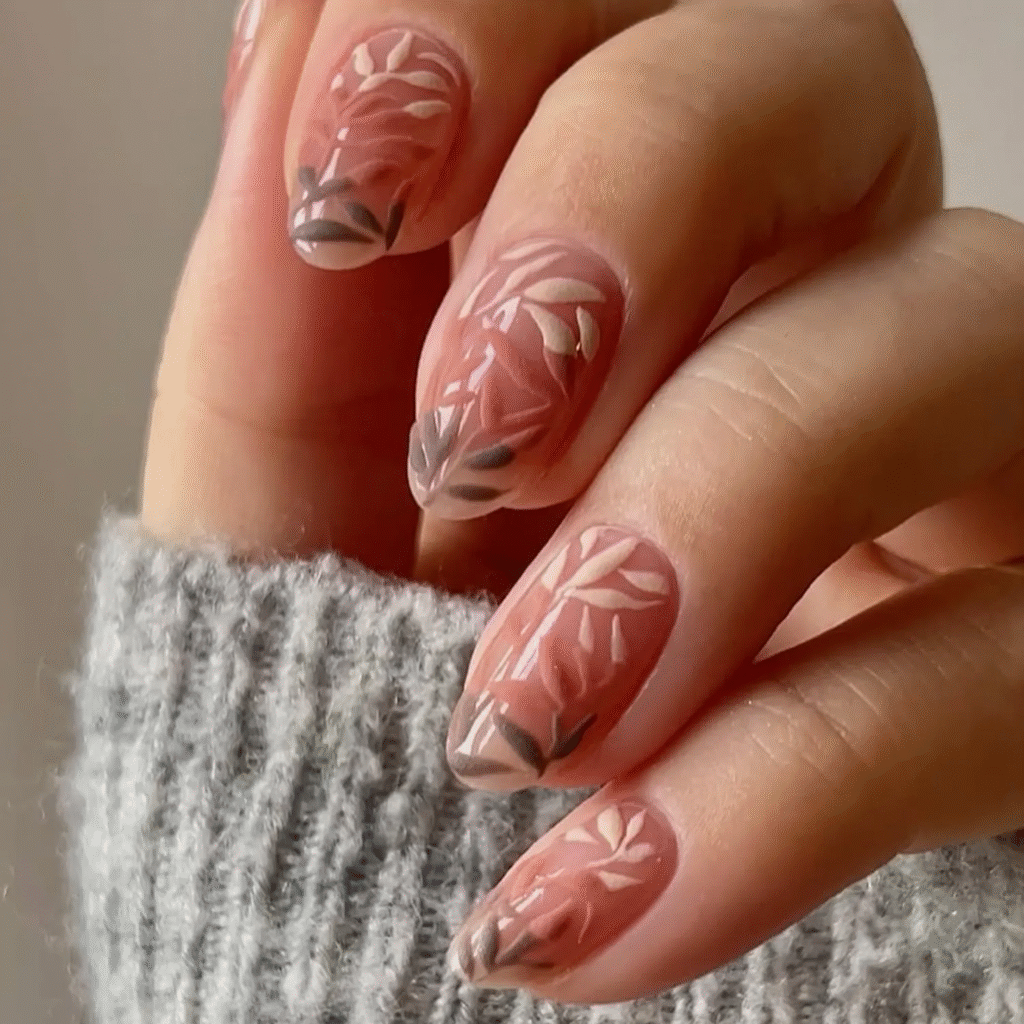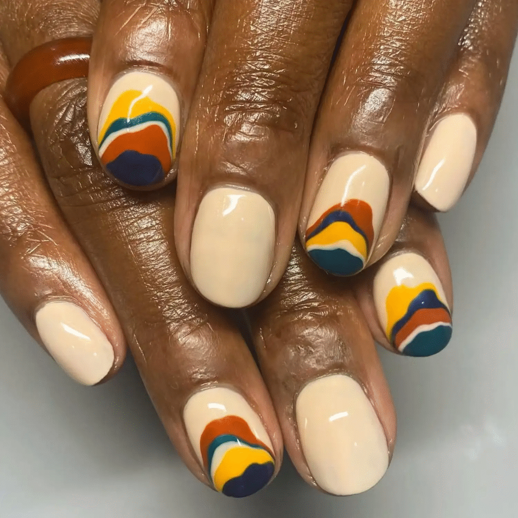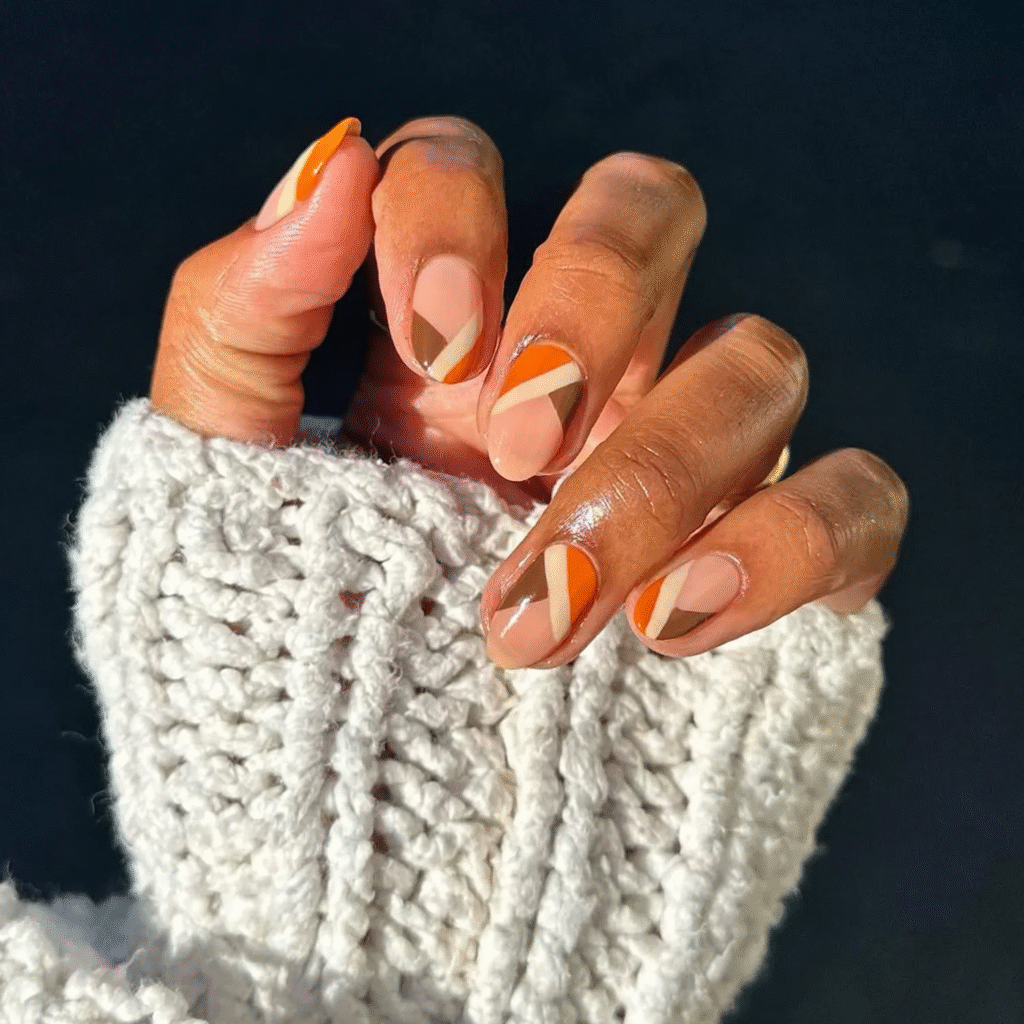 If you love getting creative with your nails, try abstract autumnal art. Wavy lines in shades of orange, brown, and yellow capture the essence of fall. It’s a fun way to let your personality shine through your nails.