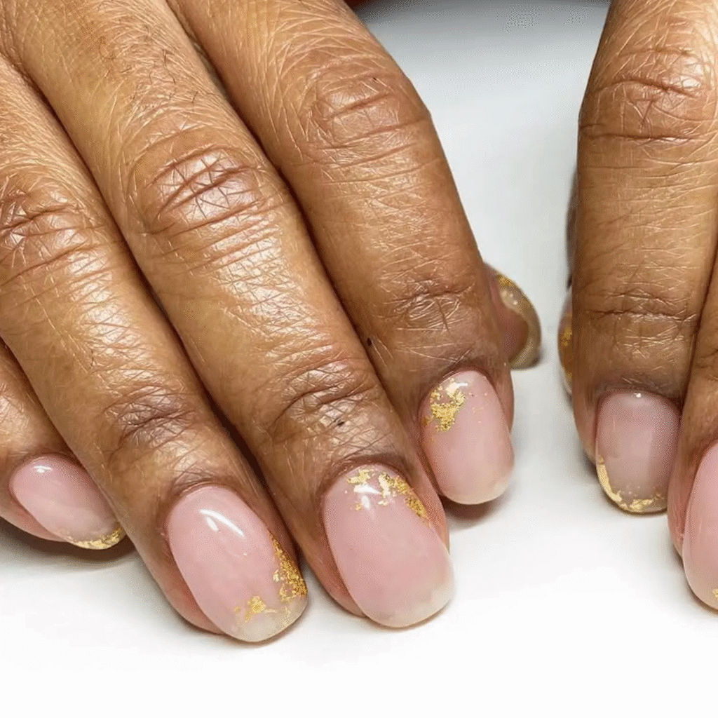 Gold accents are a great way to elevate any fall manicure. Whether it’s tiny golden flecks or a gold border, this design adds just the right amount of shimmer to your nails. Pair it with any fall color, and you’ll have a manicure that’s chic and glowing.
