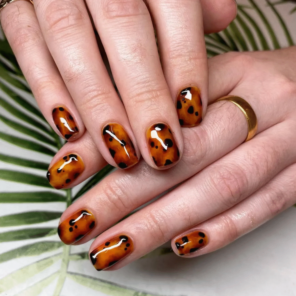 Tortoise shell nails are a fall favorite. The caramel and brown hues are neutral yet stylish, making them perfect for short nails. This print adds just the right amount of flair, giving you a chic and polished look.
