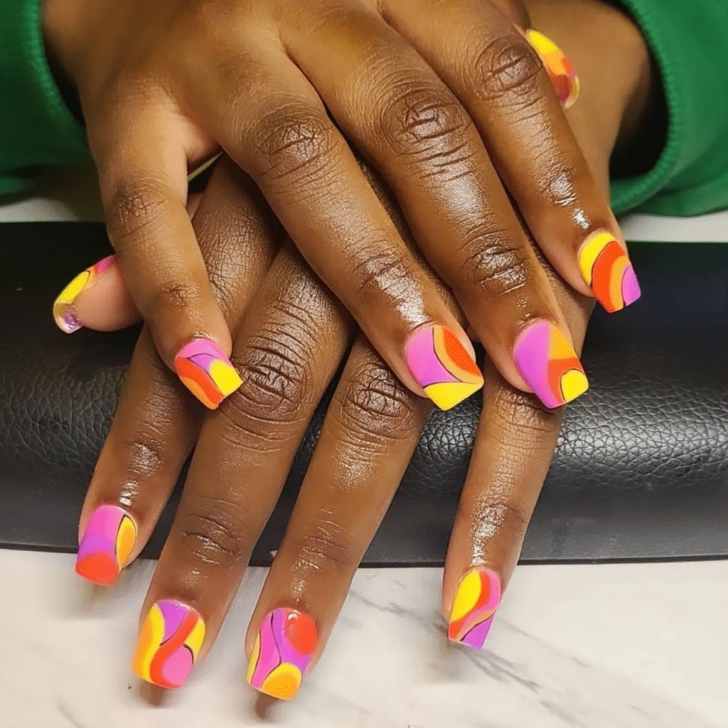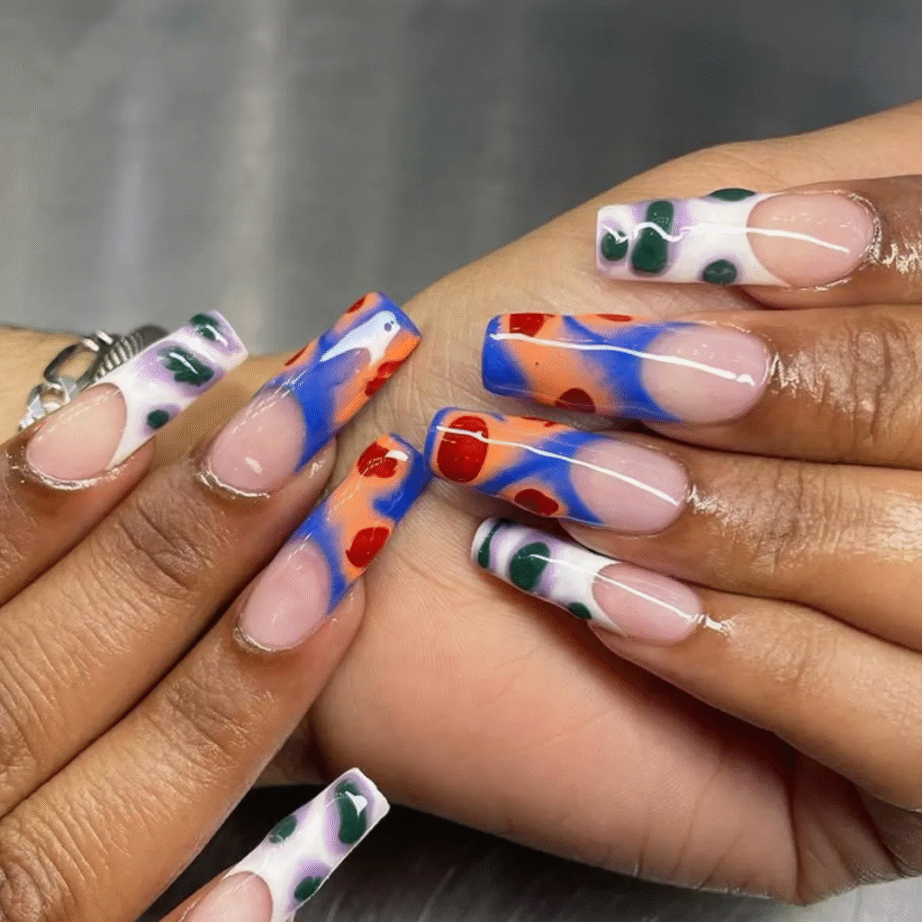 Square nails are undeniably trendy, and what better way to show that off than with a heat map design? These thermal map French tips add a pop of color and are bold enough to turn heads. The bright colors make it fun and fresh, and square nails are just the right shape to show them off.