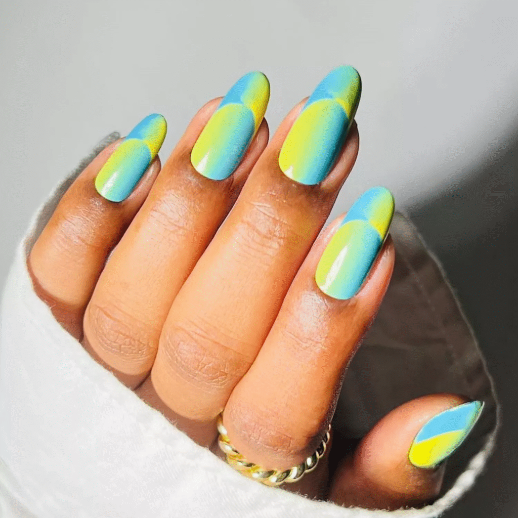 6. Blue and Green Ombré Illusion French Tips