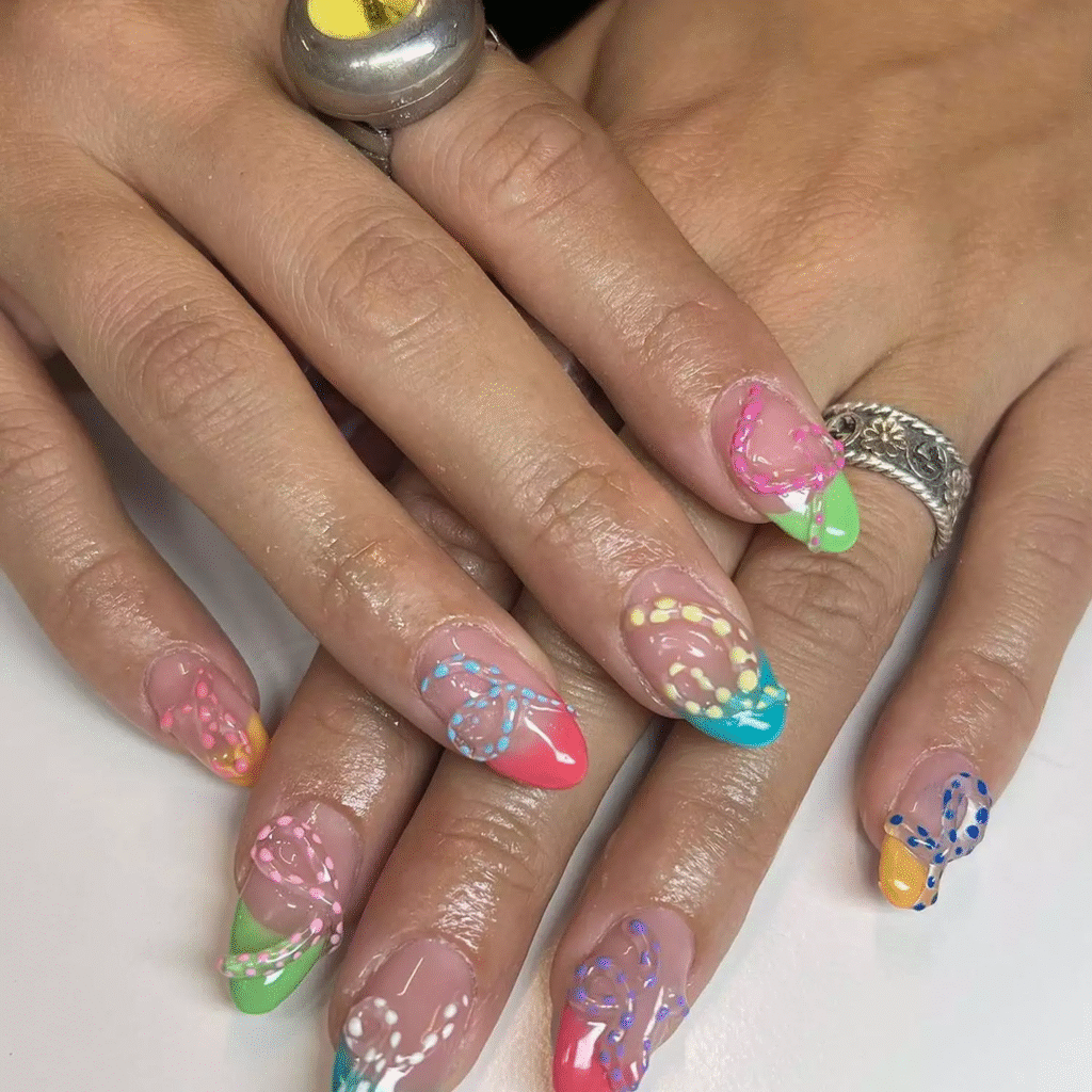 3D nail art is making waves, and this design takes it to the next level. With colorful French tips and a swirling 3D design, your nails will be the star of the show. It’s a bold and creative way to express your personality through your nails.
