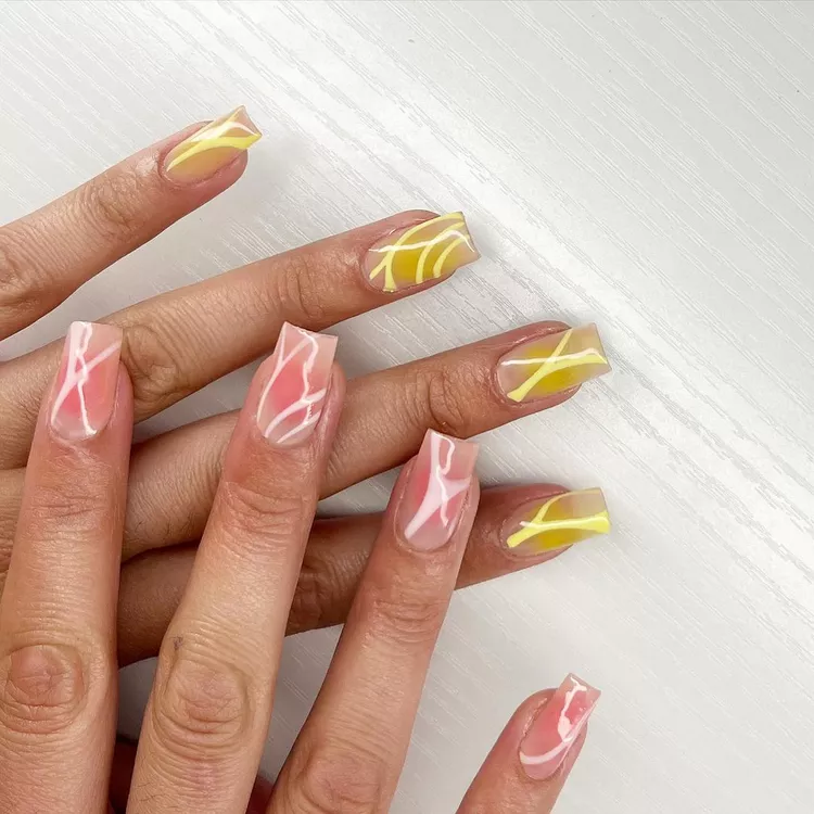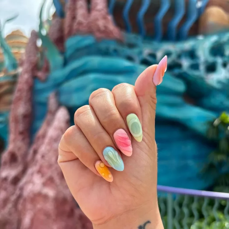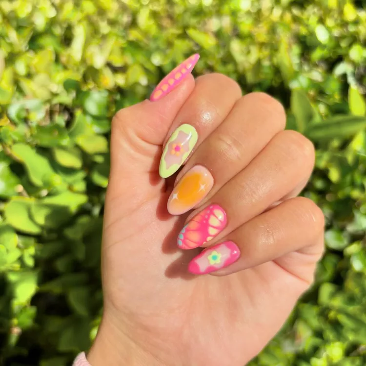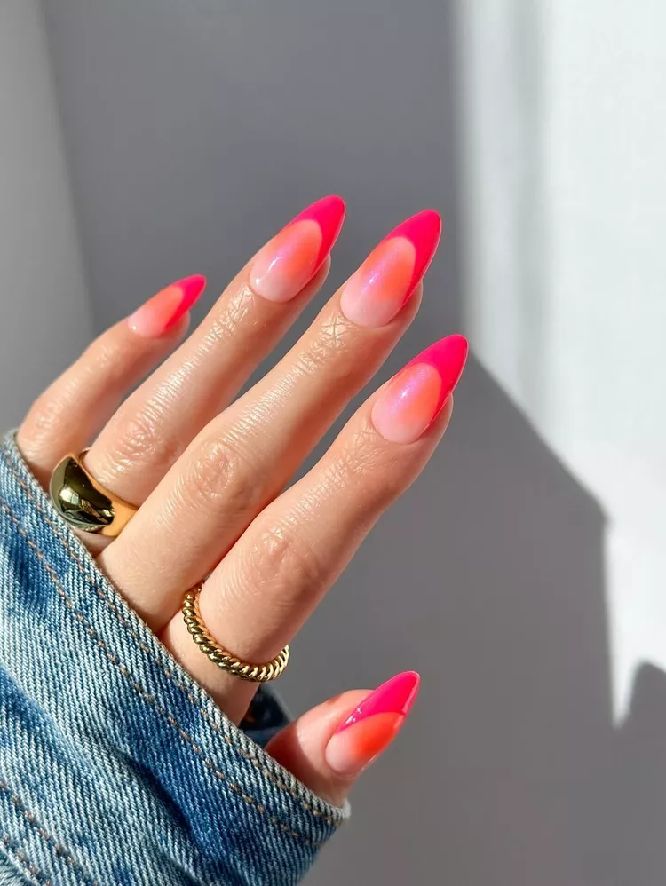 Combine the warm tones of pink, orange, and yellow to emulate a gorgeous sunset aura for a manicure that’s perfect for summer vibes.