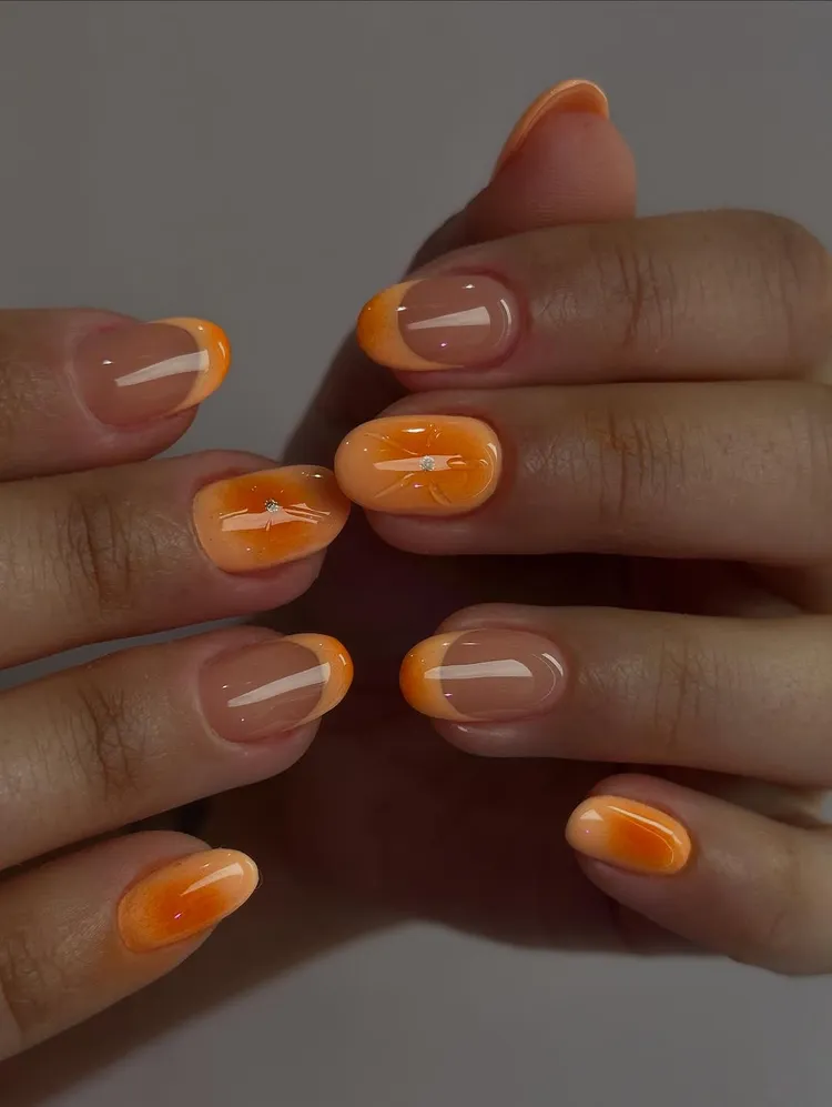 For a more playful twist, mix and match your nails with one orange aura accent nail to create a whimsical design.