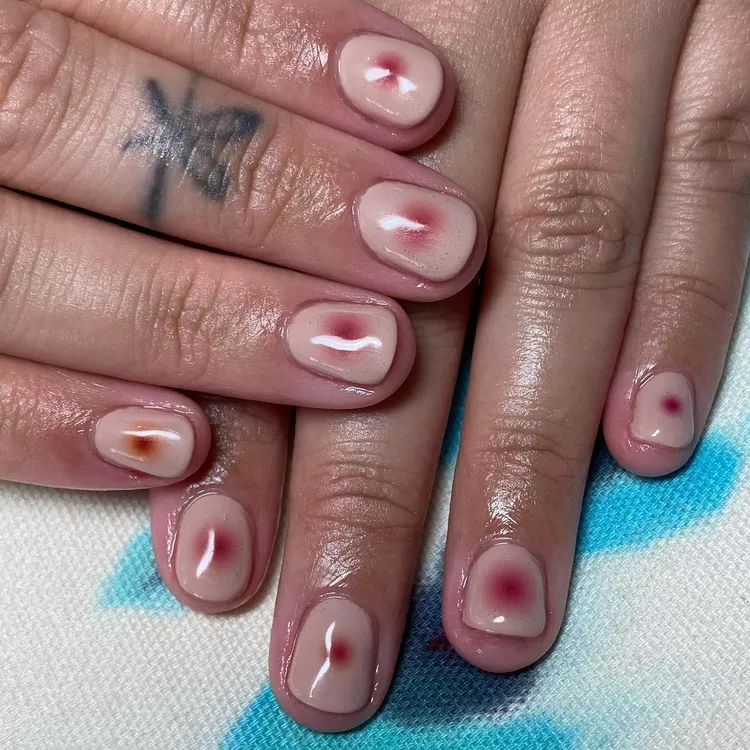 Create a soft, blushing effect with a concentrated pink aura at the center of each nail, ideal for those who prefer a neutral yet radiant look.