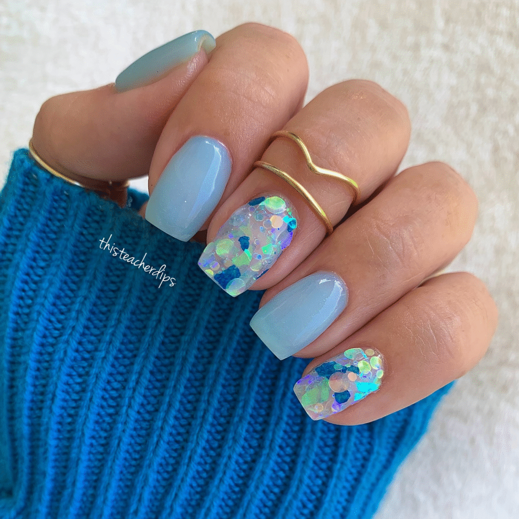 11. Dreamy Blue Glitter Nails