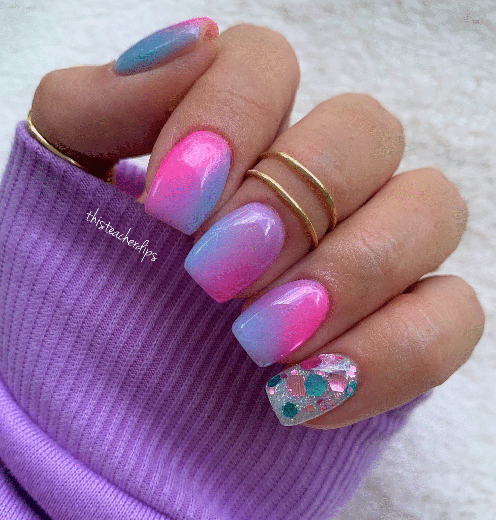 13. Ombre Pink & Blue Nails